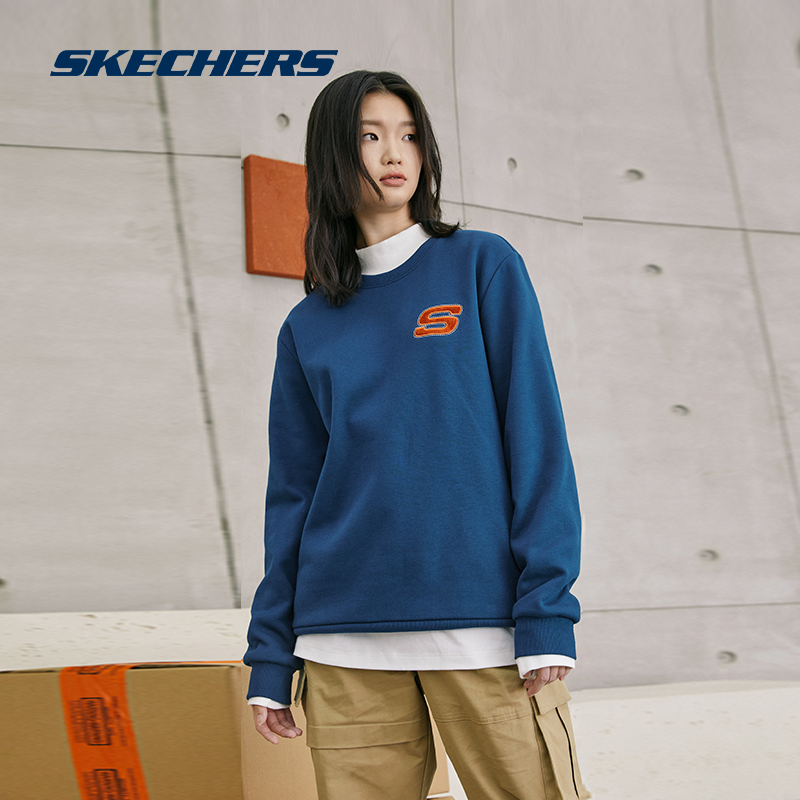 • skechers运动旗舰店【抢购】Skechers斯凯奇秋冬加绒运动卫衣女情侣款男圆领长袖外套23/4