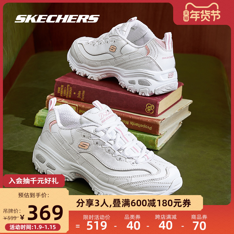skechers运动旗舰店【抢购】Skechers斯凯奇情侣小白鞋子老爹鞋女厚底跑步鞋运动鞋