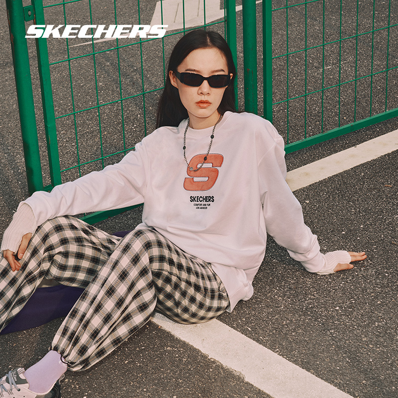 • skechers运动旗舰店Skechers斯凯奇春秋运动卫衣女针织宽松圆领外套情侣款休闲长袖01/4
