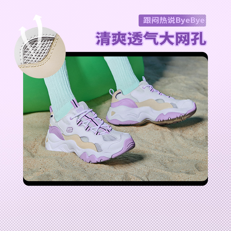 skechers运动旗舰店Skechers斯凯奇冰淇淋雪糕鞋 夏款女鞋熊猫鞋透气轻便增高老爹鞋轻质吸震,穿着舒适,廓型鞋底设计时尚潮流